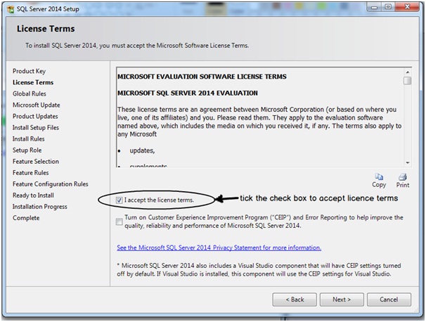 Next step will take you to "License Terms" page where you need to aceept license agreement terms before proceding installation.